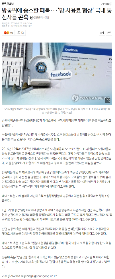 2. 한국 통신사가 페이스북에 과징금을 부과한 행위는 국내 기업을 위협하기 위한 페이크다.