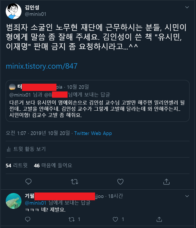 | "유시민, 이재명" 출판 기념회를 하겠습니다. (5) | 2019.11.07 |