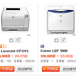 8. 컬러 레이저 프린터 컬러 레이저 프린터는 개인용으로 쓰기에는 무리가 있습니다. 비싼 토너 비용과 잉크젯에 비해 상대적으로 떨어지는 사진 인쇄 해상도 때문입니다. 사무실에서 업무용으로 쓴다고 가정하고 저렴한 유지비라는 관점에서 제품을 선택해 보겠습니다. 8.1 장당 인쇄 비용 다나와 검색: 컬러레이저 프린터 최저가 제품들을 검색합니다. 업체는 캐논과 HP만으로 한정했습니다. 레이저 프린터는 이 회사들의 제품을 구입하시는 것이 최선입니다. 이미지 검색: 다나와 가격 검색 다나와에서 찾은 저가 컬러 레이저 프린터는 극악의 미끼 상품입니다. 토너 팔기 위해서 본체는 그냥 끼워주는 것입니다. 초기 토너량은 정품 토너의 1/2혹은 1/3 밖에 들어 있지 않습니다. Canon LBP 5050과 HP LaserJ..